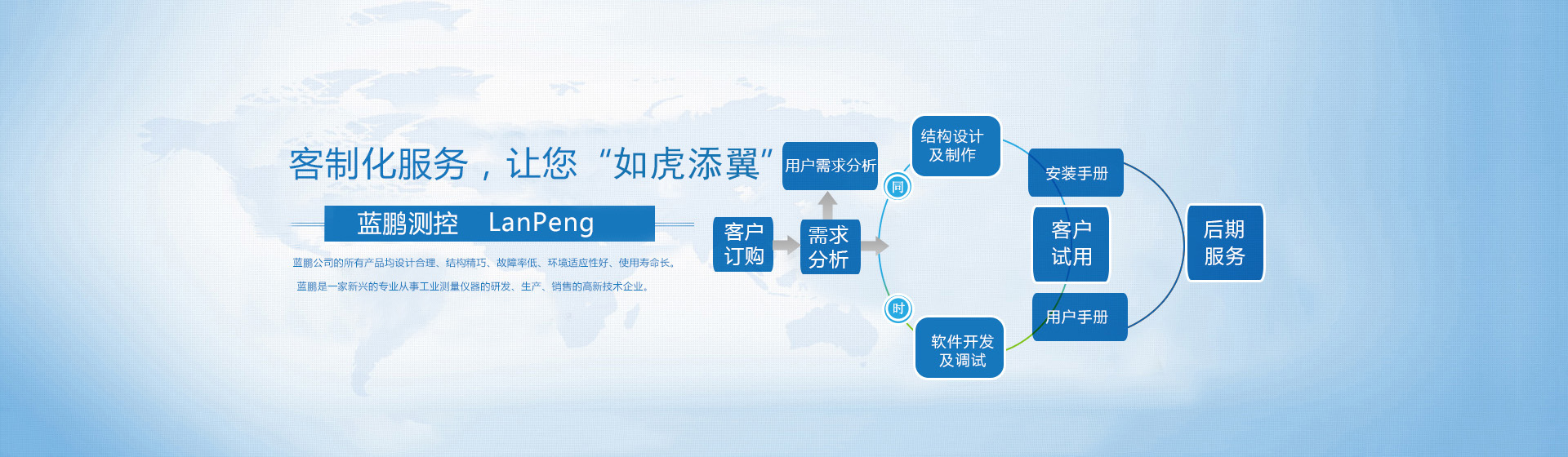 藍鵬以雄厚的技術(shù)力量為基礎(chǔ),以自研的傳感器技術(shù)為依托,專業(yè)承接各種非標(biāo)準(zhǔn)測量儀器。歡迎有測量問題的企業(yè)向我們咨詢各種類型的測量問題。我們將為您提供完善的解決方案。